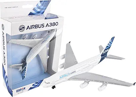 Bring the excitement of international travel to your home with the DARON Airbus A380 Single Plane. This authentic die-cast metal and plastic toy is a detailed replica of the majestic Airbus A380, the world's largest passenger airliner. Its perfect size and durable construction make it an ideal toy for young aviators to take on imaginative flights.